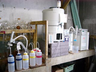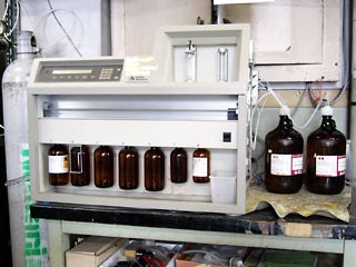 | 超純水製造装置.1996年に竹中助教授が九州工大から戻って来て以来,2回買い換えている.昨年度買い換えたばかりだが,すでに数度にわたる内部部品交換を行っている. |