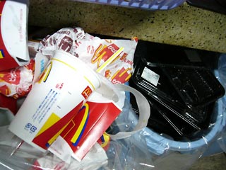 | 古今東西,工学部のキッチンに置かれたゴミ箱はこうである.栄養バランスの偏りは若さでカバー! |