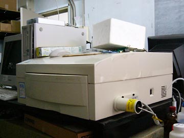 ストップトフロー装置.インターカレータとDNAとの相互作用を観察する.
